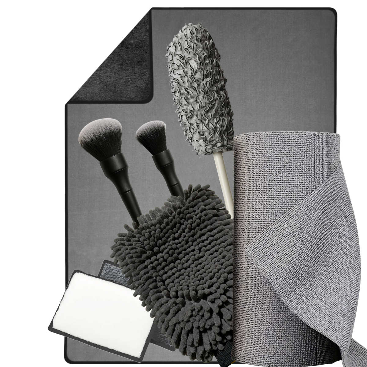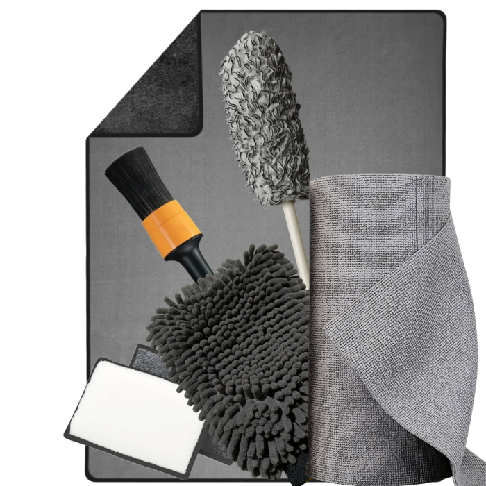 Set complet de accesorii detailing: curățare eficientă, uscare rapidă și finisaj impecabil.